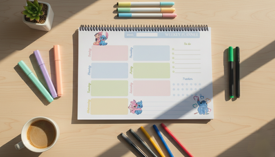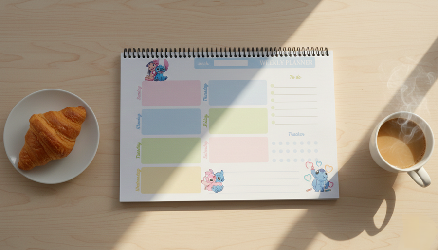 مساحة كبيرة للكتابة + تصميم كيوت محفّز يخليك منظم ومتحمس طول الأسبوع.